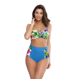 Fenomenálne plavky z novej kolekcie Marko. Báječne farebné, s romantickými kvetmi a vyšším spodným okrajom, ktorý odkazuje na retro štýl... Podprsenka s vystuženými košíčkami, s kosticami a veľkým push-up efektom dvíha, vypína a opticky zväčšuje prsia, takže na pláži budete vyzerať sexy. Push-up sa dodáva v každej veľkosti plaviek a nie je z modelu odnímateľný. Popruhy sú úplne odnímateľné. Obvod je zviazaný vzadu. Spodná časť je vyššia, zakrýva bruško a kvetinové boky zoštíhľujú boky. Jedny z najlepších plaviek tejto sezóny! Obrovská dávka ženskosti! Talianska tkanina.