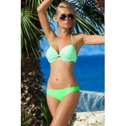 Štýlové dvojdielne plavky viazaná na krku a chrbta. Polstrované košíčky s odnímateľnými vložiek dodatočné push-up. Misy kombináciu veľkolepé zvrásnenie. Kostým vyrobená z vysoko kvalitného materiálu. Figy rezať, hladká.