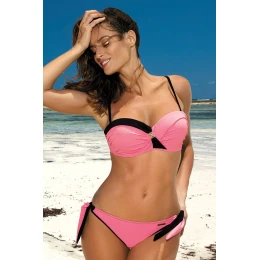 Jedny z najkrajších dvojdielnych plaviek v tejto kolekcii. Krásne, ženské, elegantné... Podprsenka s prekrývajúcim sa výstrihom, uprostred zdobená krásnou brošňou. Vyzerá obzvlášť dobre, najmä preto, že výrobca navrhol veľmi lákavú konštrukciu. Jej košíčky sú riadne vystužené, vystužené kosticami a obohatené kapsičkami na push-up košíčkami pripojenými k súprave - dokonale zhromažďujú prsia, zdvíhajú ich a riadne zväčšujú. Vytvára fenomenálny výstrih. Odnímateľné, nastaviteľné ramienka, ideálne na opaľovanie tela. Obvod sa na chrbte pohodlne zapína sponou. Hladké nohavičky, zaviazané na bokoch. Vrelo odporúčame!