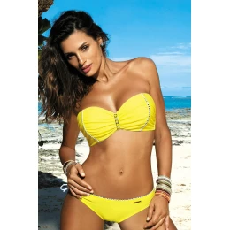 Elegantné dvojdielne plavky s krásnou brošňou uprostred podprsenky. Košíčky sú riadne vystužené, vystužené kosticami a obohatené o push up - zhromažďujú prsia, dobre ich zdvíhajú, udržujú ich v správnej polohe a sexuálne ich zväčšujú. Push up je k dispozícii od veľkosti S do XL vrátane, je možné ho z modelu vybrať. Veľmi pekná línia podprsenky poteší svojim šarmom. Výstrih tu vyzerá skutočne fenomenálne. Jemné ozdobné lemovanie na hladkej tkanine. Popruh je možné odopnúť, čo umožňuje rovnomerné opálenie ramien, majú nastaviteľnú dĺžku. Elastický obvod, zapínanie na pracku. Nohavičky sú elastické s bočnými šnúrkami, takže si môžete nastaviť šírku bokov – od tradičných až po viac sexi... Voľba je na vás, pre nás je to hit! Rozhodne odporúčame!