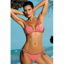 Sexi bikiny - dvojdielne plavky s podprsenkou zaväzovanou za krkom aj na chrbte a spodným dielom zaväzovaným na oboch stranách bokov. V krásnych tropických farbách. Za zmienku stojí. Podprsenka je vystužená vyberateľnou vložkou. Dokonale zhromažďuje prsia a výrazne ich pozdvihuje, čím vytvára zmyselný dekolt. Košíčky bez kostíc, s možnosťou pohybu na šnúrke (viazanie), bez push up. Nohavičky s dobrou výškou, pohodlné. Kvalitná talianska tkanina Carvico Tesutti.