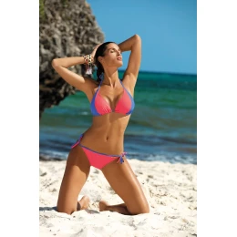 Sexi bikiny - dvojdielne plavky s podprsenkou zaväzovanou za krkom aj na chrbte a spodným dielom zaväzovaným na oboch stranách bokov. V krásnych tropických farbách. Za zmienku stojí. Podprsenka je vystužená vyberateľnou vložkou. Dokonale zhromažďuje prsia a výrazne ich pozdvihuje, čím vytvára zmyselný dekolt. Košíčky bez kostíc, s možnosťou pohybu na šnúrke (viazanie), bez push up. Nohavičky s dobrou výškou, pohodlné. Kvalitná talianska tkanina Carvico Tesutti.