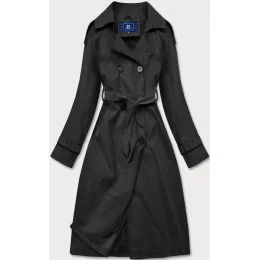 Čierny dvojradový kabát s opaskom (AG3-011)