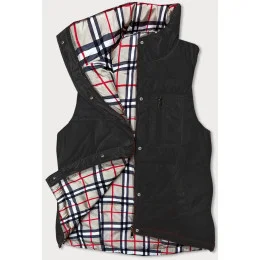Jedna strana vesty je hladká a druhá je ozdobená károvaným vzorom burberry. Model má voľný trapézový strih, stojačik, dve vrecká bez zapínania a zapína so zipsom. Vesta má dĺžku k bokom. Spodný okraj modelu je polguľatý a predná časť vesty je o niečo kratšia ako zadná.