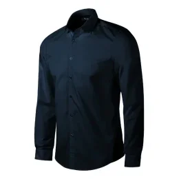 strih s bočnými švami dvojitý sed a švy na chrbte dvojdielny košeľový golier zosilnené koncovky goliera predné okraje zatavené légou dlhé rukávy so šikmou manžetou s 2 gombíkmi perleťové gombíky vo farbe materiálu (1 náhradný navyše) tvarovaný spodný okraj