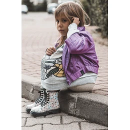 Piękne, dziewczęce botki zostały wykonane z eko skóry w modny wzór. Dodatkowo przyozdobiono je brokatem. Botki posiadają suwak z boku cholewki oraz klasyczne sznurowanie. Botki osadzone na płaskim obcasie i platformie z antypoślizgową podeszwą. Dodatkowo jest obszyta nicią. W środku zostały ocieplone kocem obuwniczym. Świetny model dla Twojej pociechy! Przy wyborze rozmiaru prosimy kierować tabelą rozmiarów.
