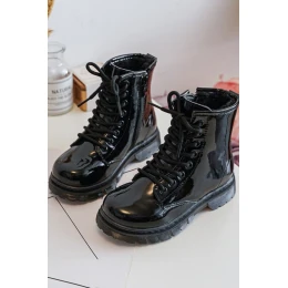 Dziecięce Botki Lakierowane Z Suwakiem Czarne Tibbie