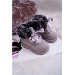 Dziecięce Botki Traperki Ocieplone Futerkiem Szare Tesoro