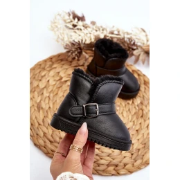 Dziecięce Eko Skórzane Śniegowce Z Paskiem Czarne Orinor