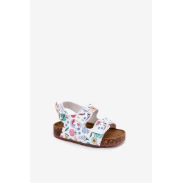 Dziecięce Sandałki Na Korkowej Podeszwie Z Klamrami Owoce Białe Thessa