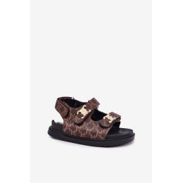 Dziecięce Sandałki Na Rzepy Ze Złotymi Detalami Brązowe Cavina