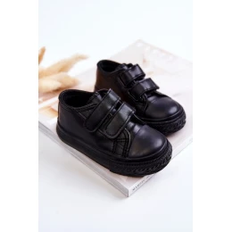 Dziecięce Skórzane Tenisówki Trampki Na Rzepy Czarne Foster