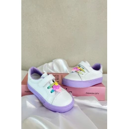 Dziecięce Sneakersy Trampki Z Przypinką Biało-Fioletowe Pennyn