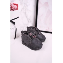 Dziecięce Sznurowane Śniegowce Ocieplone Futerkiem Szare Hunter