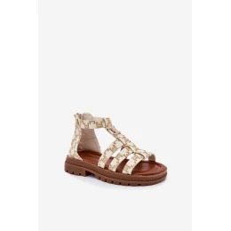 Dziewczęce Sandałki Gladiatorki Ze Złotym Detalem Beżowe Vesira