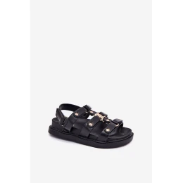 Dziewczęce Sandałki Ze Złotym Detalem Czarne Lunessa