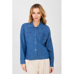 Klasická dámska džínsová bunda v ležérnom štýle, ideálna na každodenný outfit. Model so zapínaním na gombíky, klasickým golierom a dlhými rukávmi, ktorý je vhodný na väčšinu roka. Hladký vzor podčiarkuje univerzálny charakter bundy a uľahčuje jej kombinovanie s rôznymi kúskami oblečenia. Bunda je vyrobená z kvalitnej bavlny s prídavkom elastanu a polyesteru, čo zaručuje pohodlie pri nosení, pružnosť a skvelé prispôsobenie sa postave. Štandardná dĺžka zaručuje pohodlie a nadčasový strih. Na prednej strane hrudníka sa nachádzajú praktické vrecká s chlopňami, ktoré dodávajú funkčnosť a podčiarkujú klasický džínsový štýl. Skvelá voľba na každý deň do práce, na prechádzku alebo stretnutie v uvoľnenej atmosfére.
