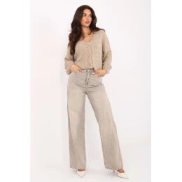 Tieto dámske džínsy so širokými nohavicami vyrobené z kvalitnej bavlny sú skvelou voľbou na každodenný, ležérny štýl. Model s vysokým pásom a širokými nohavicami zaručuje pohodlie a moderný vzhľad. Vpredu sa nachádzajú praktické vrecká a vzadu klasické otvorené vrecká. Celkový vzhľad dotvára zapínanie na zips a gombík. Vďaka hladkému džínsovému materiálu nohavice ľahko zladíte s mnohými kúskami šatníka.