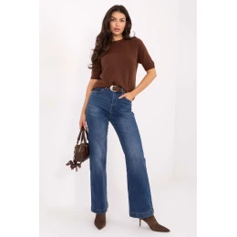 Tyto dámské jeansy s přímými nohavicemi jsou klasikou v moderním provedení, ideální pro ženy, které ocení pohodlí, univerzálnost a nadčasový styl. Jejich jednoduchý střih krásně podtrhuje postavu, zároveň poskytuje volnost pohybu a pohodlí při nošení každý den. Model je vyroben z vysoce kvalitní směsi bavlny, elastanu, polyesteru a viskózy, díky čemuž jsou kalhoty měkké, elastické a skvěle se přizpůsobují tělu. Vysoký pas zdůrazňuje pas a opticky zjemňuje nohy, zatímco přímé nohavice dodávají stylizaci eleganci a lehkost. Jeansy se zapínají na zip a knoflík, mají kapsy na přední straně a otevřené kapsy na zadní straně. Další výhodou je zapínací pásek, který je jak praktickým, tak ozdobným prvkem. Jsou skvělou volbou pro každodenní, ležérní stylizace, skvěle vypadají jak s mikinou, tak s elegantní košilí nebo sako.