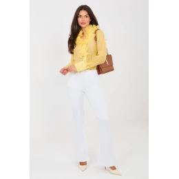 Moderní zvonové dámské džíny jsou ideální volbou pro ženy, které oceňují nadčasový styl s retro nádechem. Model s vysokým pasem krásně zdůrazňuje pas, tvaruje postavu a poskytuje pohodlí po celý den. Charakteristické široké nohavice se rozšiřují ke dnu, což dodává outfitu lehkost a výrazný charakter a zároveň opticky prodlužuje nohy. Klasické kapsy zvyšují funkčnost modelu, a zapínání na zip a knoflík zajišťuje pohodlné a stabilní přizpůsobení. Džíny jsou vyrobeny z vysoce kvalitní směsi bavlny s přídavkem elastanu, díky čemuž je materiál příjemný na dotek, prodyšný a jemně elastický, ideálně se přizpůsobuje postavě, neomezuje pohyb. Hladký vzor dělá z modelu skvělý kousek do casualového stylu. Skvěle se hodí jak na každý den, tak do práce, v kombinaci s košilí, sako nebo svetrem vytvoří módní a pohodlný outfit. Jedná se o univerzální kousek oblečení, který nikdy nevyjde z módy.
