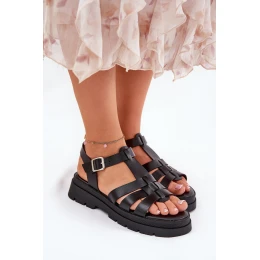 Eko Skórzane Sandały Damskie Na Platformie Czarne Nendales
