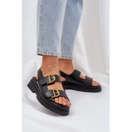 Eko Skórzane Sandały Z Klamrami Czarne Vulinea