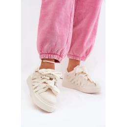 Eko Skórzane Sneakersy Na Platformie Beżowe Penolle