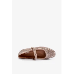Ekologické semišové balerínky zdobené béžovými kamienkami Tinara