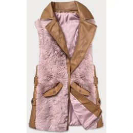 Elegantná vesta z karamelovo ružovej ekokože a kožušiny (BR9592-51022)