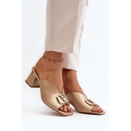 Eleganckie Klapki Damskie Na Obcasie Laura Messi 2771 Złote