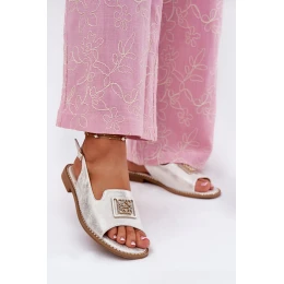 Eleganckie Sandały Damskie Na Płaskim Obcasie Z Ozdobą S.Barski KV51-082 Srebrne