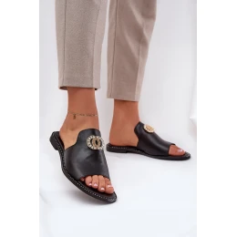 Eleganckie Skórzane Klapki Damskie Z Ozdobą Zazoo 3008 Czarne