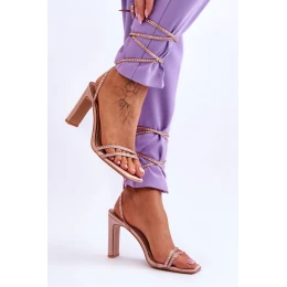 Eleganckie Wiązane Sandały Z Dżetami Nude Nessy