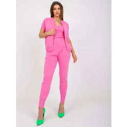 Rozmery súpravy v jednej veľkosti merané na plocho: šírka blúzky v podpazuší - 49 cm, dĺžka blúzky - 59 cm, šírka topu v podpazuší - 37 cm, dĺžka topu - 58 cm, šírka nohavíc v páse - 31 cm, dĺžka nohavíc - 99 cm.