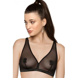 Erotická podprsenka Lisbet ROZA - čierna farba - typ braletka - vyrobená z elastického tylu - predná časť zdobená nášivkami - zadná časť zdobená čipkovou vsadkou, ktorú je možné odopnúť - možnosť vymeniť za jednoduché odopínateľné ramienka, ktoré sú súčasťou