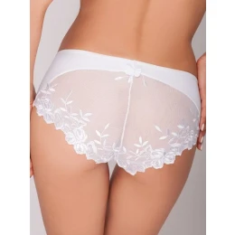 Očarujúce zloženie - pohodlné nohavičky s krásnou čipkou na zadnej strane. Mierne priehľadné, pokryté vyšívanými rozetami. Zloženie: 85 % polyester, 15 % elastan.