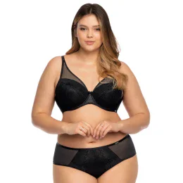 Predný diel nohavičiek je vyrobený z čipky. Model má plnšie boky vyrobené z jemného tylu. Zadný diel nohavičiek z mikrovlákna lemuje čipka s bezšvovým lemovaním.