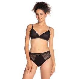Predný diel nohavičiek je vyrobený z hladkej bavlny. Boky a zadný diel modelu sú ušité z efektnej čipky. V páse modelu je širšia ažúrová guma. Nohavičky sú balené po dvoch kusoch.