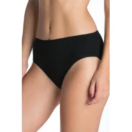 Nohavičky sú balené po dvoch kusoch v čiernej farbe. Tento univerzálny model je plný a má zvýšený strih, ktorý čiastočne zakrýva bruško. Vzadu nohavičky zakrývajú zadok.