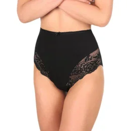 Nohavičky majú vysokú líniu pása a na bokoch sú plnšie. V prednej časti modelu je krajkové lemovanie.