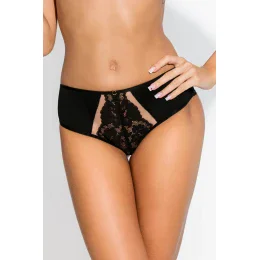 Celé nohavičky v čiernej farbe, predná strana z hladkého saténu na bokoch, stred a zadná strana z bohatej čipky, bavlnený klin.