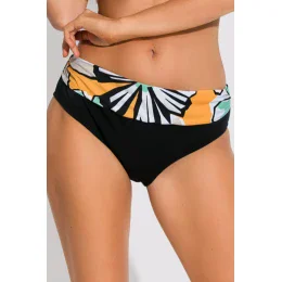 Klasický strih spodného dielu plaviek, vrchný pásik zo vzorovaného mikrovlákna, spodný a zadný diel z hladkej čiernej farby.