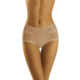 Krásne, ženské nohavičky z kombinácie jemnej sieťoviny, čipky a hladkého mikrovlákna. Mierne plnší strih, tvarovaná prezentácia. 83 % polyamid, 17 % elastan.