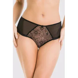 Nohavičky sú vyrobené z čiernej sieťoviny, stred je z béžového tylu pokrytého čiernym kvetinovým motívom, zadná časť je zo sieťoviny s plochým zakončením - ideálne pod priliehavé oblečenie.