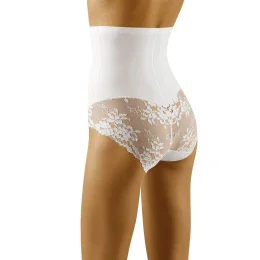 Nohavičky s vysokým pásom a čipkovým lemom na zadočku. Tvarujúce línie na bruchu a bokoch. Hladká predná a zadná časť zo špecializovaného úpletu, ktorý jemne zoštíhľuje telo a zlepšuje tvar postavy. Vyšší pás tiež opticky zoštíhľuje oblasť pása, horná časť je z vnútornej strany podšitá silikónom, čo zvyšuje pohodlie bielizne a zabraňuje jej skĺznutiu z tela. Zloženie: 58 % polyamid, 42 % elastan.