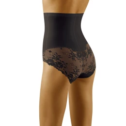 Nohavičky s vysokým pásom a čipkovaným lemom na zadočku. Tvarujú brucho a boky. Hladká predná a zadná časť zo špecializovaného úpletu, jemne zoštíhľujúceho postavu a zlepšujúceho tvar tela. Vyšší pás zároveň opticky zoštíhľuje oblasť pása, vrchná časť je z vnútornej strany podšitá silikónom, čo zvyšuje komfort bielizne a zabraňuje jej skĺznutiu z tela. Zloženie: 58 % polyamid, 42 % elastan.