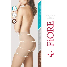 Pančuchové nohavice Fiore, model Total Slim 20 den M5206, vyrobené zo 79% polyamidu, 19% elastanu, 2% bavlny, bez vyznačenej špičky, 20 DEN, dámske, vyznačené nohavičky.