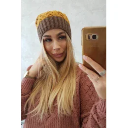 Fleecová čiapka Bibiana K264 mocca+mustard