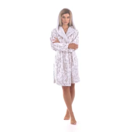Dámsky župan s kapucňou Flora Short 4856 Patterned dove grey - Vestis