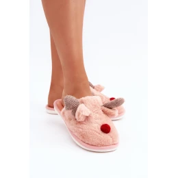 Futrzane Kapcie Damskie Z Motywem Renifera Różowe Sennalith
